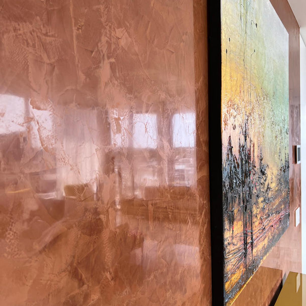 Cadoro classic is our creamiest putty, designed for creating layered textures like matte concrete surfaces. You are also able to mimic the attributes of expensive marbles and limestone. It can be applied to various substrates, including drywall and concrete board. Suitable for Interior walls and ceiling projects in health care, retail, residential, hospitality and offices. What differentiates Cadoro Venetian plaster from our other lime materials? We have no aggregates mixed in. Cadoro Tadelakt and Marmorino for example, include various sizes of marble aggregates.